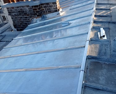 Un toit en zinc possède des particularités qui demandent une intervention réalisée avec soin et savoir-faire. Ce matériau, très apprécié dans notre métier, se distingue par sa grande malléabilité : il se façonne facilement, ce qui permet de créer des formes sur mesure et de s’adapter aux configurations les plus complexes. C’est d’ailleurs pour cette raison que le zinc n’est pas utilisé uniquement pour les toitures complètes, mais aussi pour les abergements de cheminées, les noues, les entourages de fenêtres de toit ou encore certains éléments d’étanchéité.