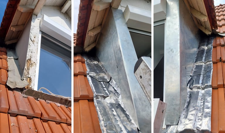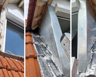 Il a donc fallu façonner de belles pièces de zinc pour protéger la fenêtre de long en large, un peu comme une armure brillante. Un nouveau plomb a ensuite été installé pour garantir une étanchéité digne de ce nom — parce qu’une maison, c’est mieux quand l’eau reste dehors.